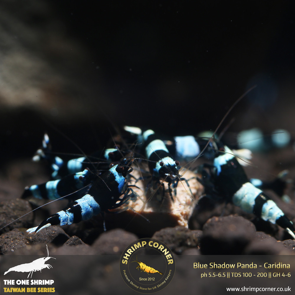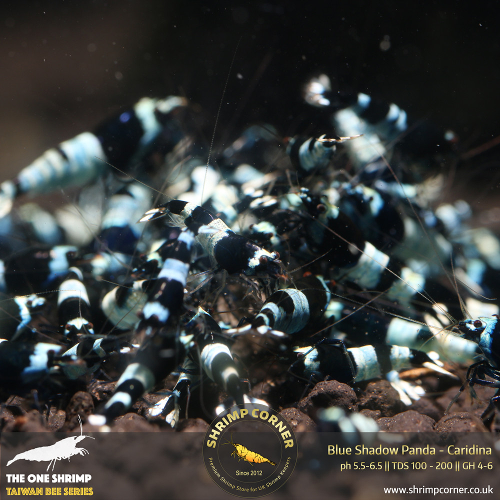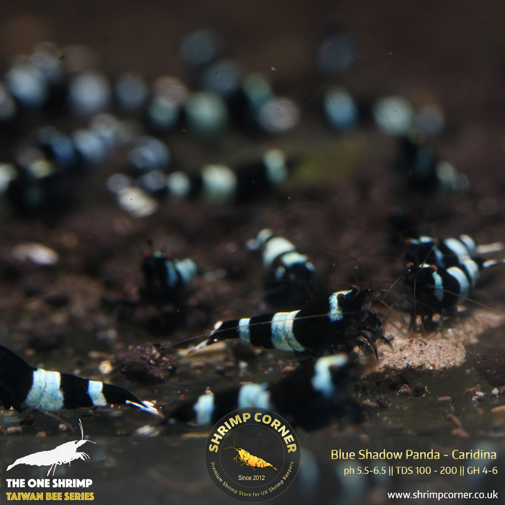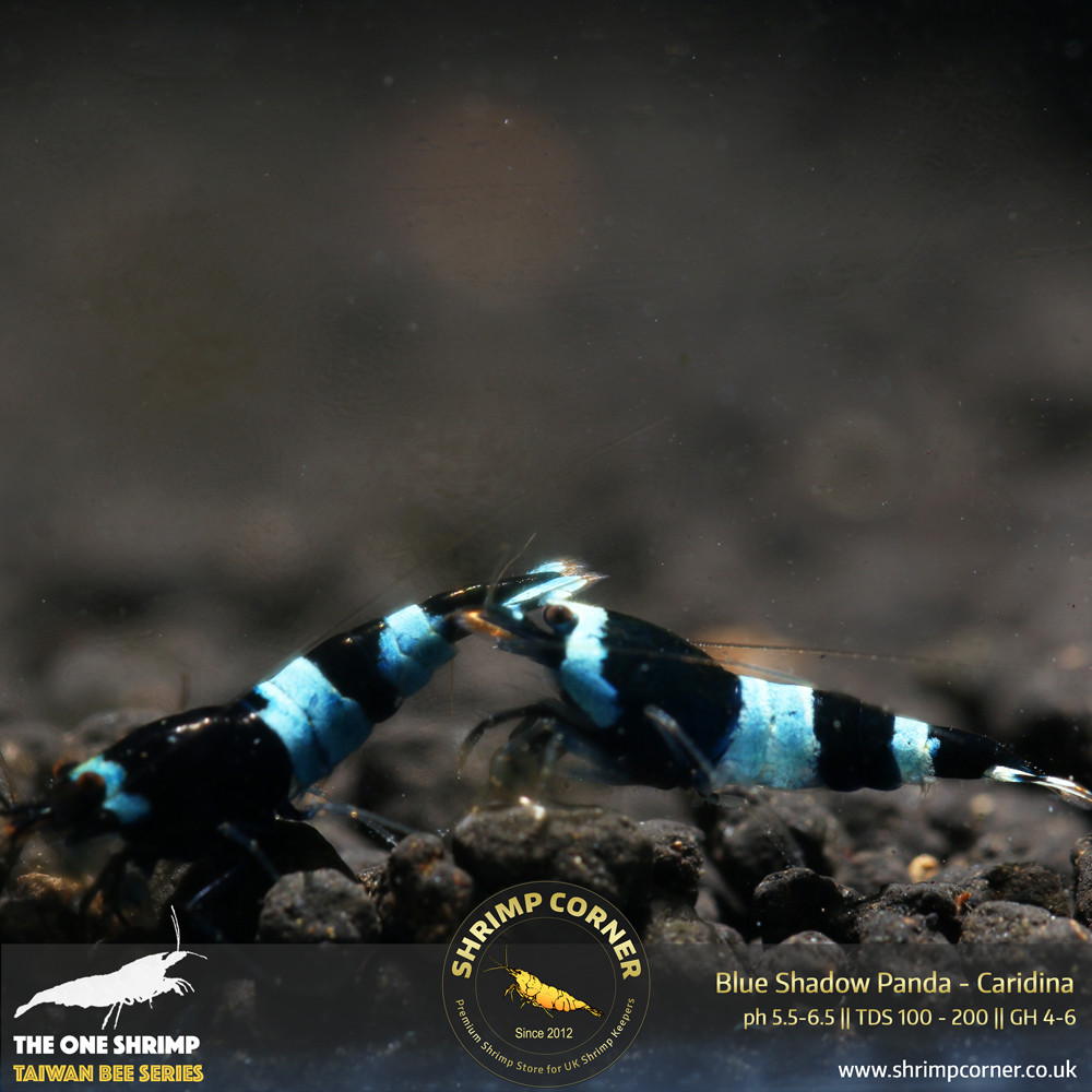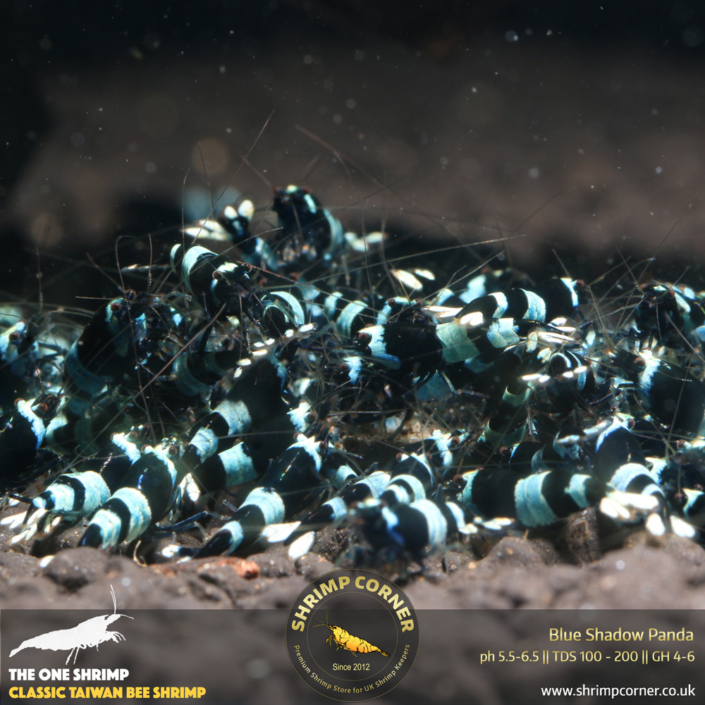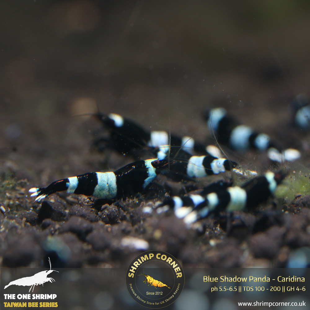 Classic Taiwan Bee Shrimp with black and white band. However with this listing, the white band has blue shadow over. They will look like the photos. If you are after the dark blue or blue panda then they wont be the one.