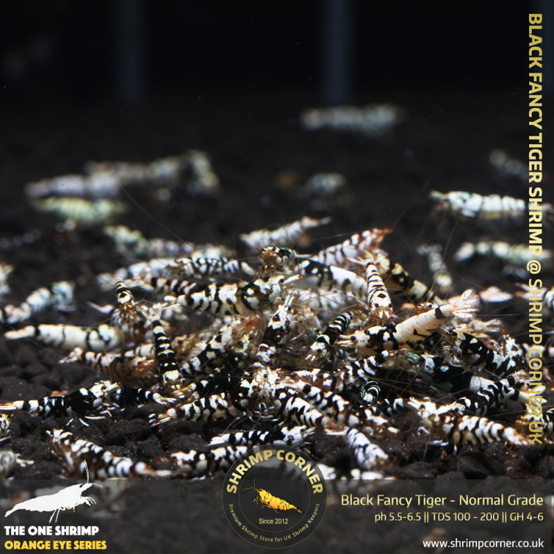 Group of 10 + 1 x BLACK FANCY TIGER Shrimp | Common Grade