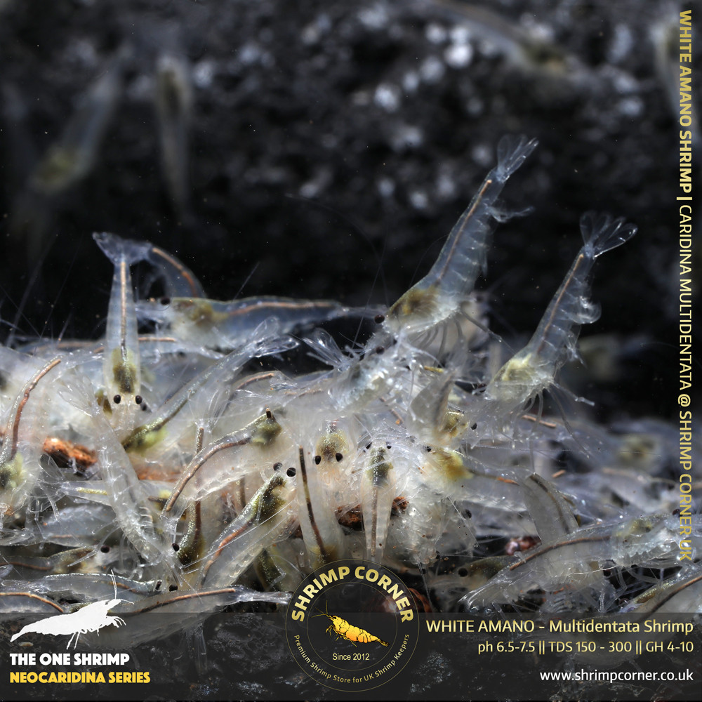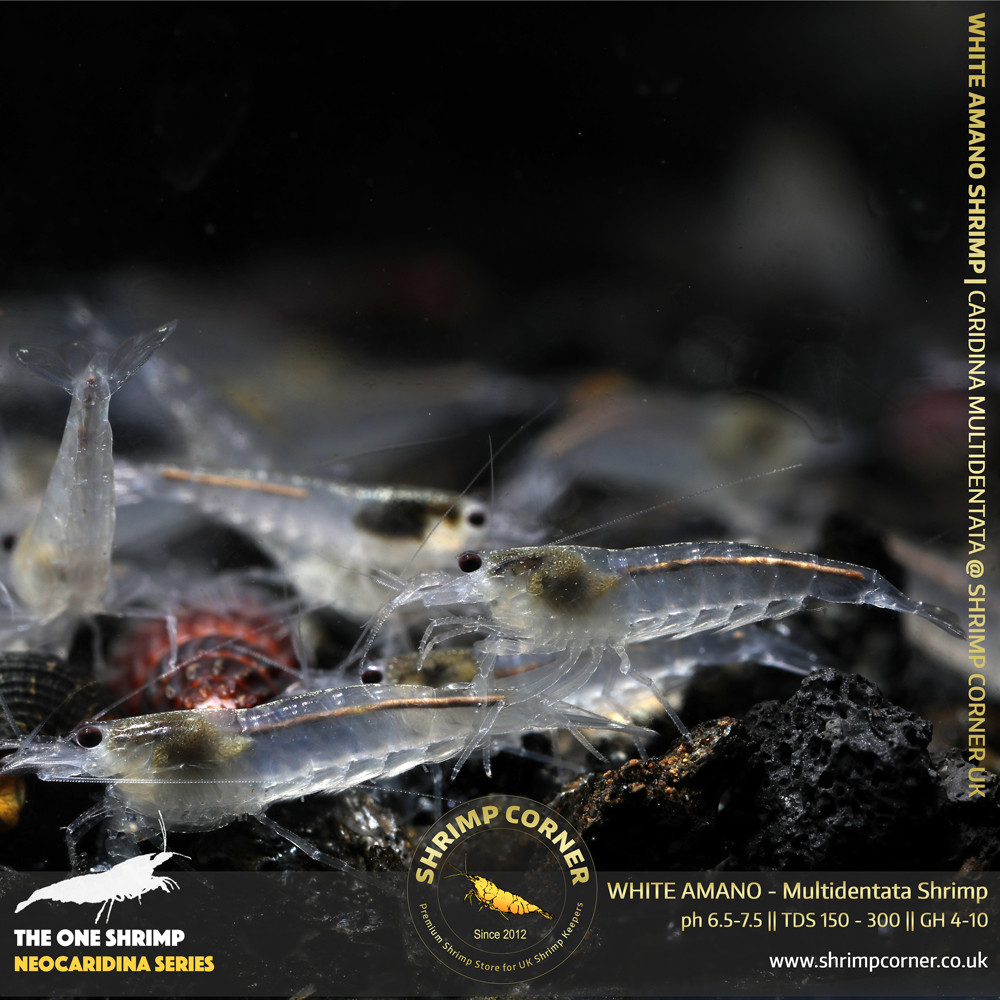 The White Amano is the colour mutated from the original variant and is strikingly beautifu' & very hardy shrimp as well