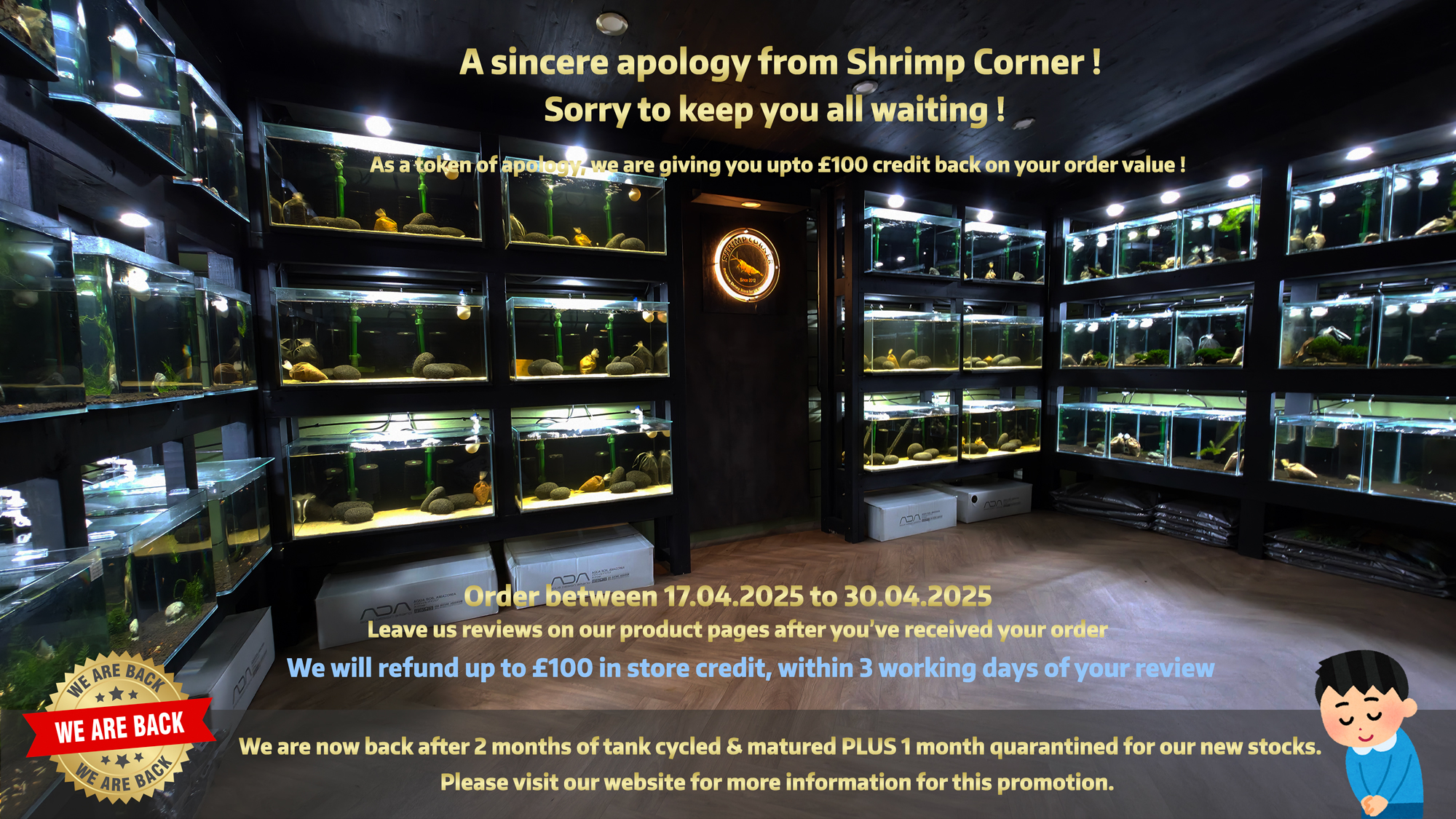 8. Only valid while stock lasts. Pre-orders for Sulawesi shrimp & snails are also eligible for this promotion