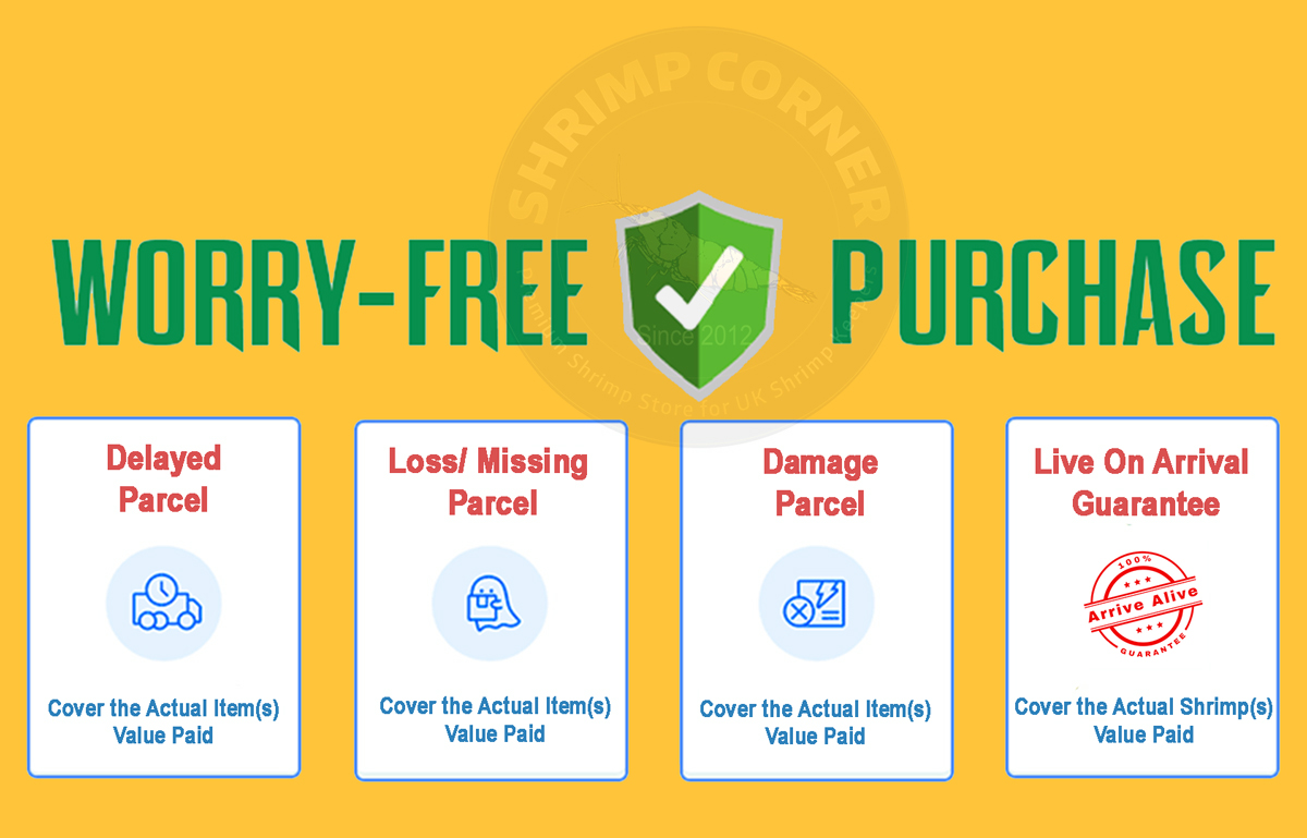 We take great care in ensuring that your shrimp & plants are packed securely and shipped promptly. However, once the package leaves our care, we cannot control external factors such as shipping delays or handling by carriers. Our DOA (Dead on Arrival) Guarantee is in place to assist in the rare event that your shrimp arrive dead or severely damaged.