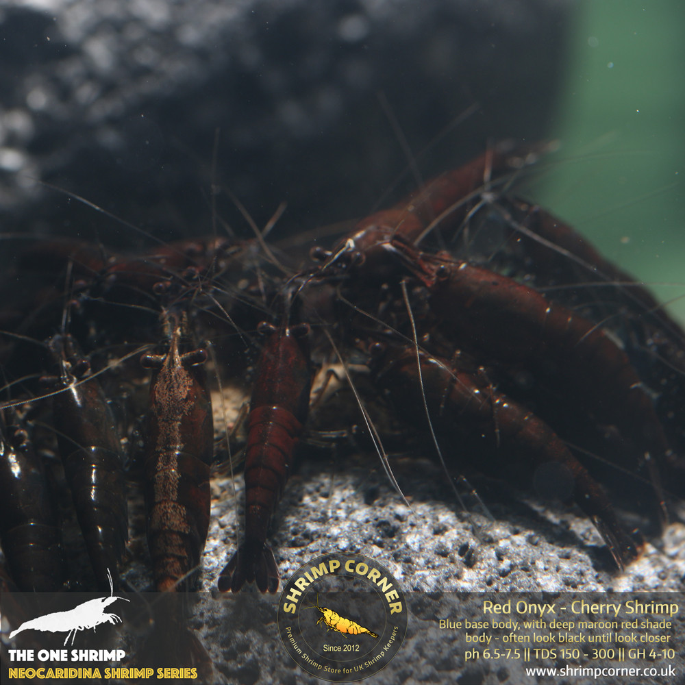 Please be aware: The Red Onyx can be mistakenly think they are chocolate shrimp. But they are NOT, you can see the dark red over blue base body if you shine a torch at them.