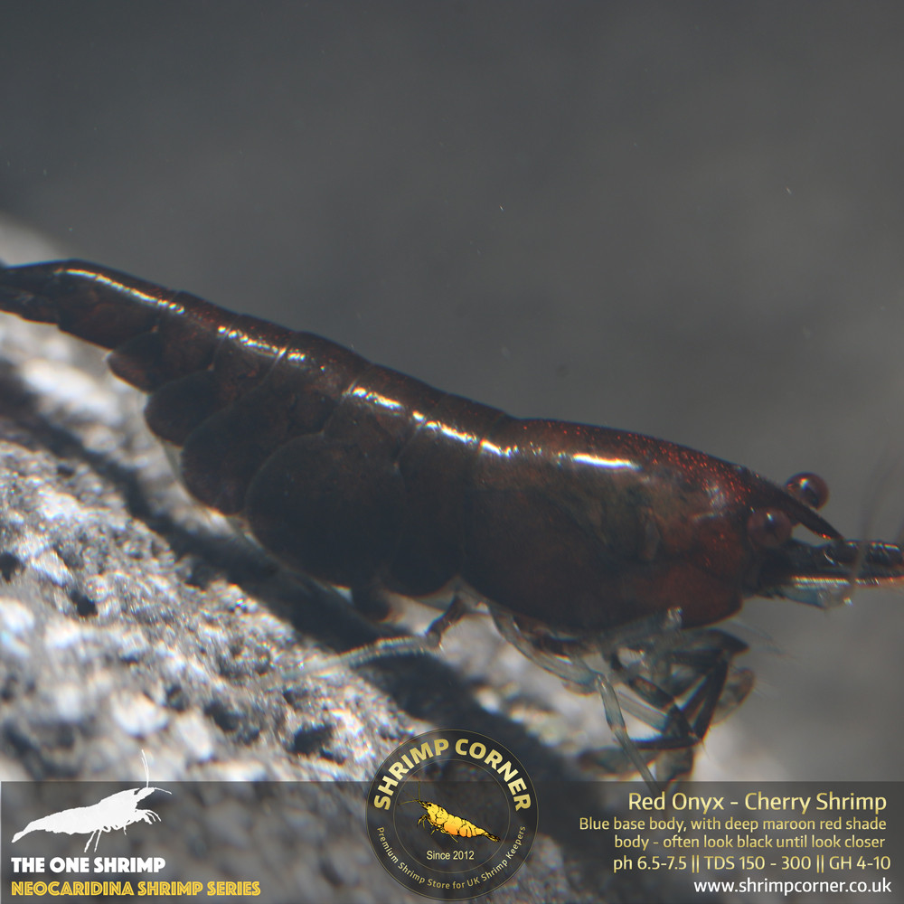 With its almost shiny polished appearance, our Red Onyx shrimp is a really cool and unique looking shrimp in your aquarium. If dark red Bloody Mary shrimp is not enough for you, then these Red Onyx is an absolute great choice. It is a mix between deep maroon red to dark chocolate brown colour.