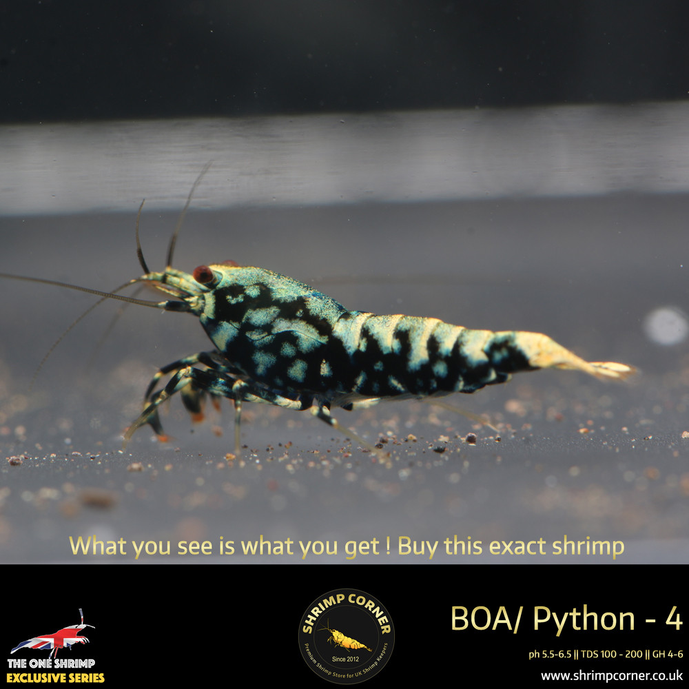 BOA4 - Golden Base Blue Metallic - Pattern more to Python. The shrimp's colouration will be even better once grown