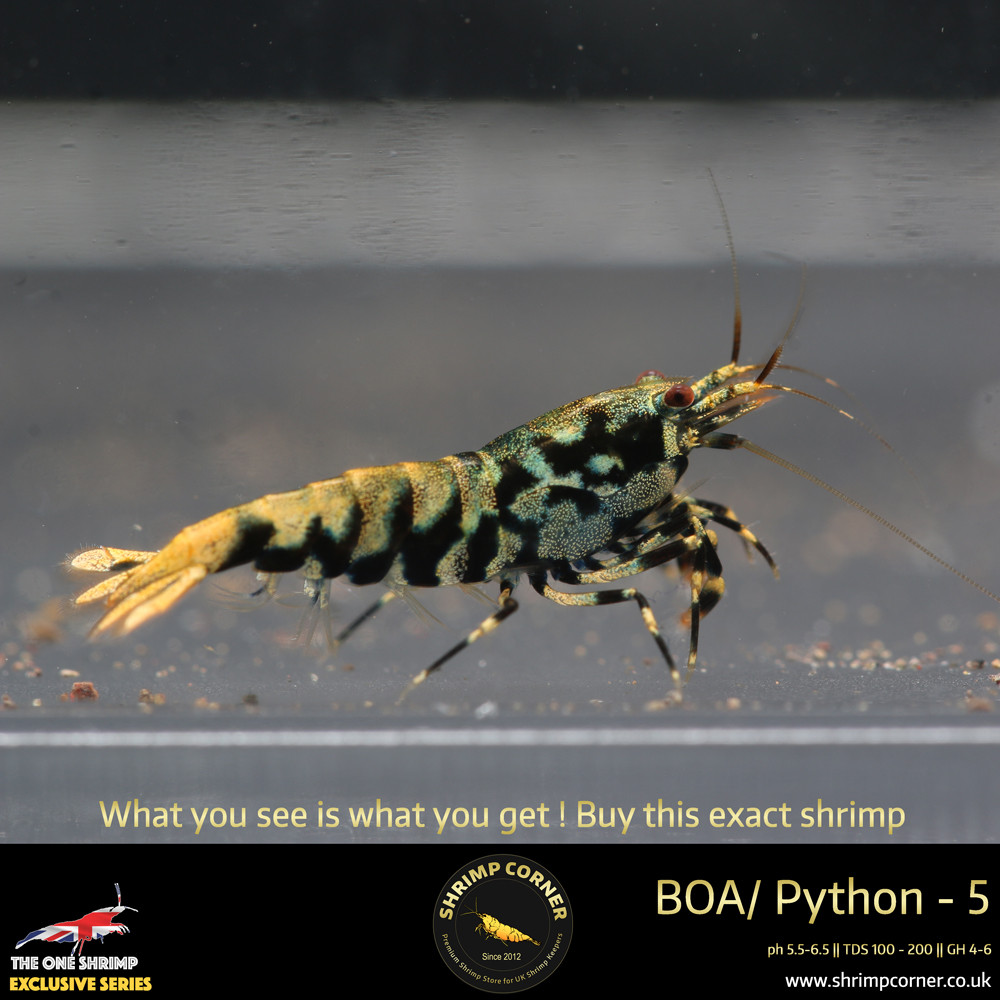 BOA 5 - Golden Base with Mint Blue Body - Pattern more to Python. The shrimp's colouration will be even better once grown